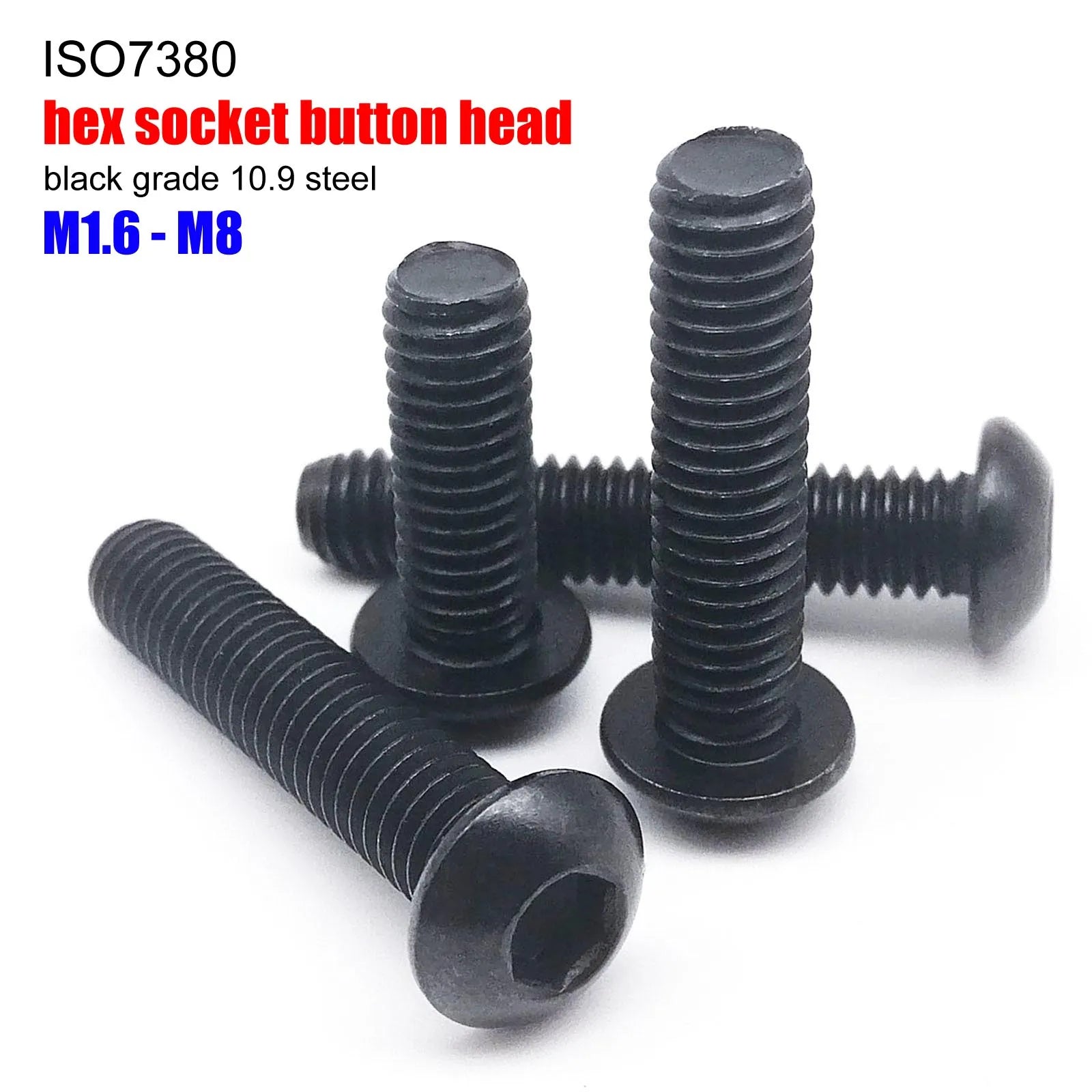 10/50pcs M1.6 M2 M2.5 M3 M4 M5 M6 M8 Black Grade 10.9 Steel ISO7380 Hexagon Hex Socket Head Button Mushroom Allen Bolt Screw