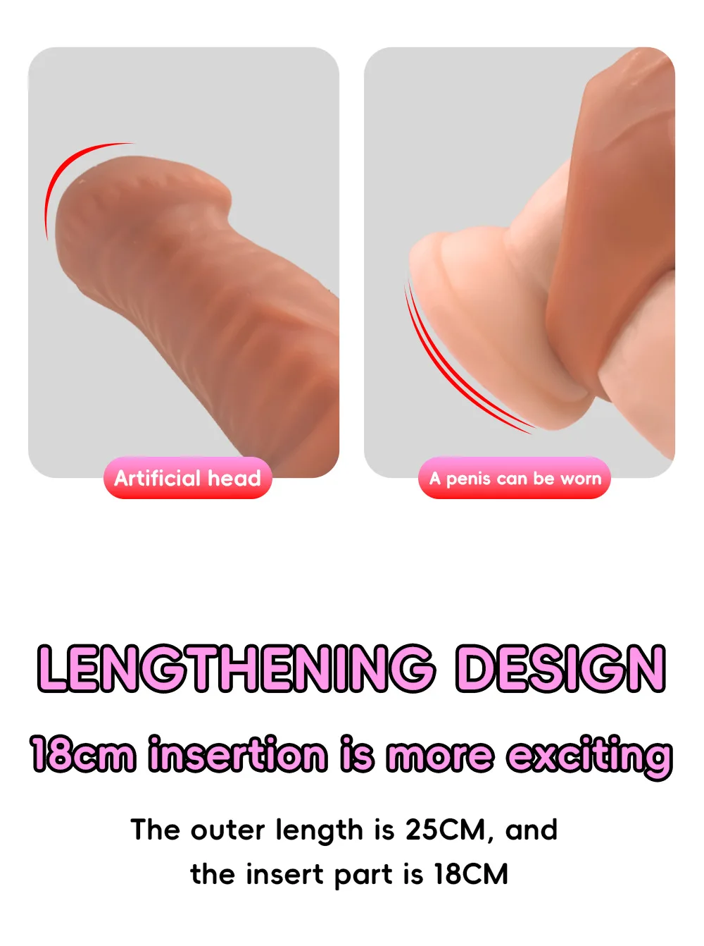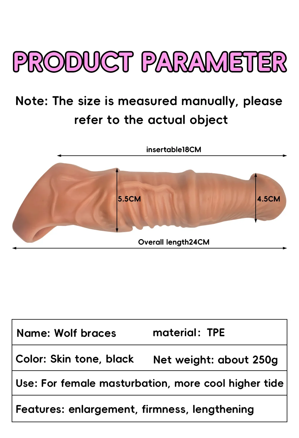 24CM Huge Penis Enlargemen Condoms Extender Realistic Soft Penis Sleeve Reusable Condom Cock Ring Sex Toys For Men