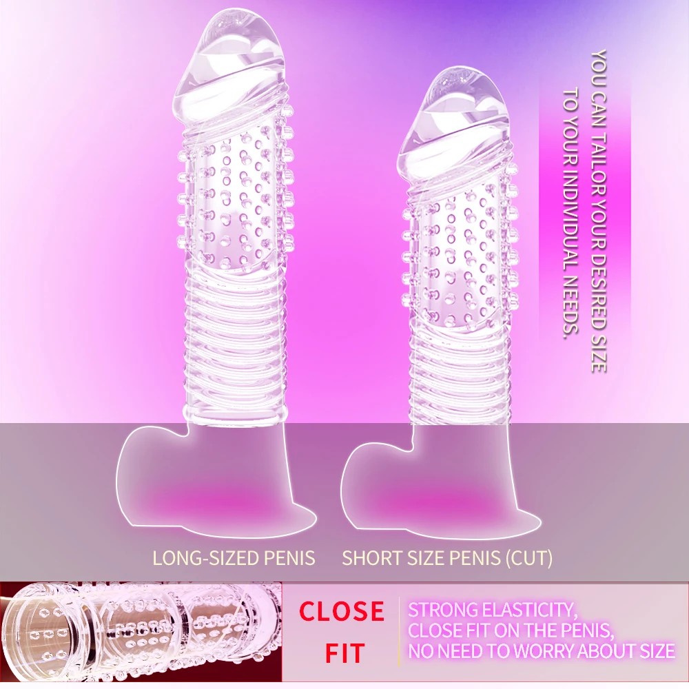 Adult Sex Toy Penis Vibrating Condoms Enlargement Men Reusable Cock Condom vibrator Full Cover Penis Sleeve Sex Toys for Couples