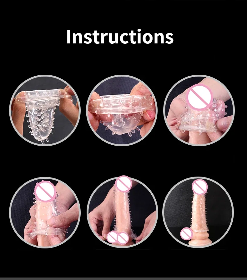 Condom with Spikes Extension Reusable Condom Penis Sleeve Male Enlargement Time Delay Spike Clit Crystal Condoms